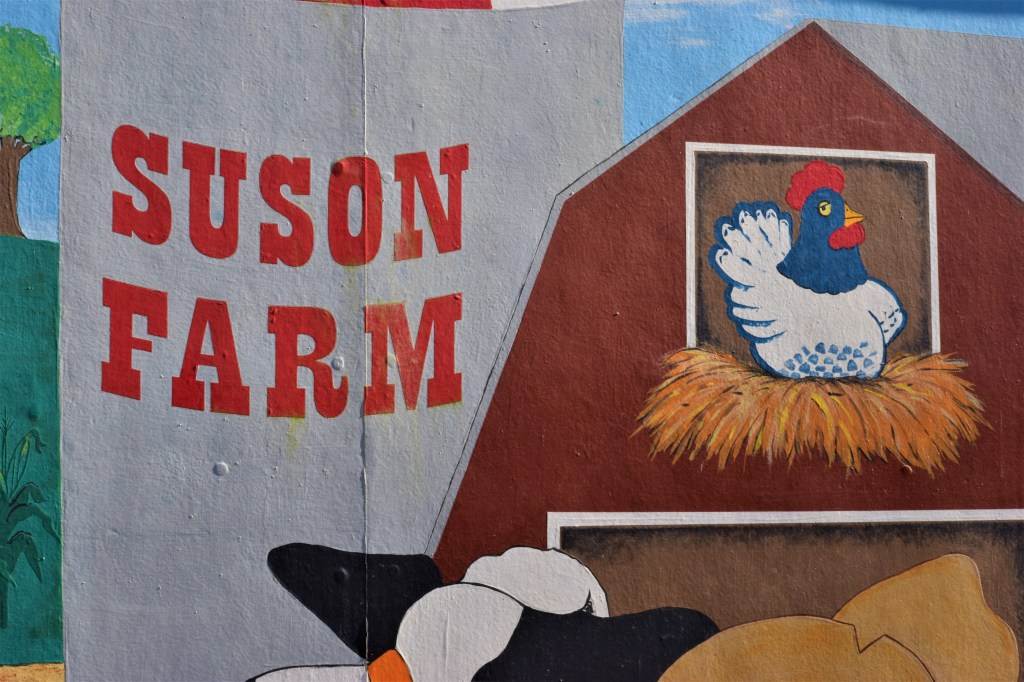 The classic red barns. The pigs rolling around in the mud. The horses grazing in a field. Everything.